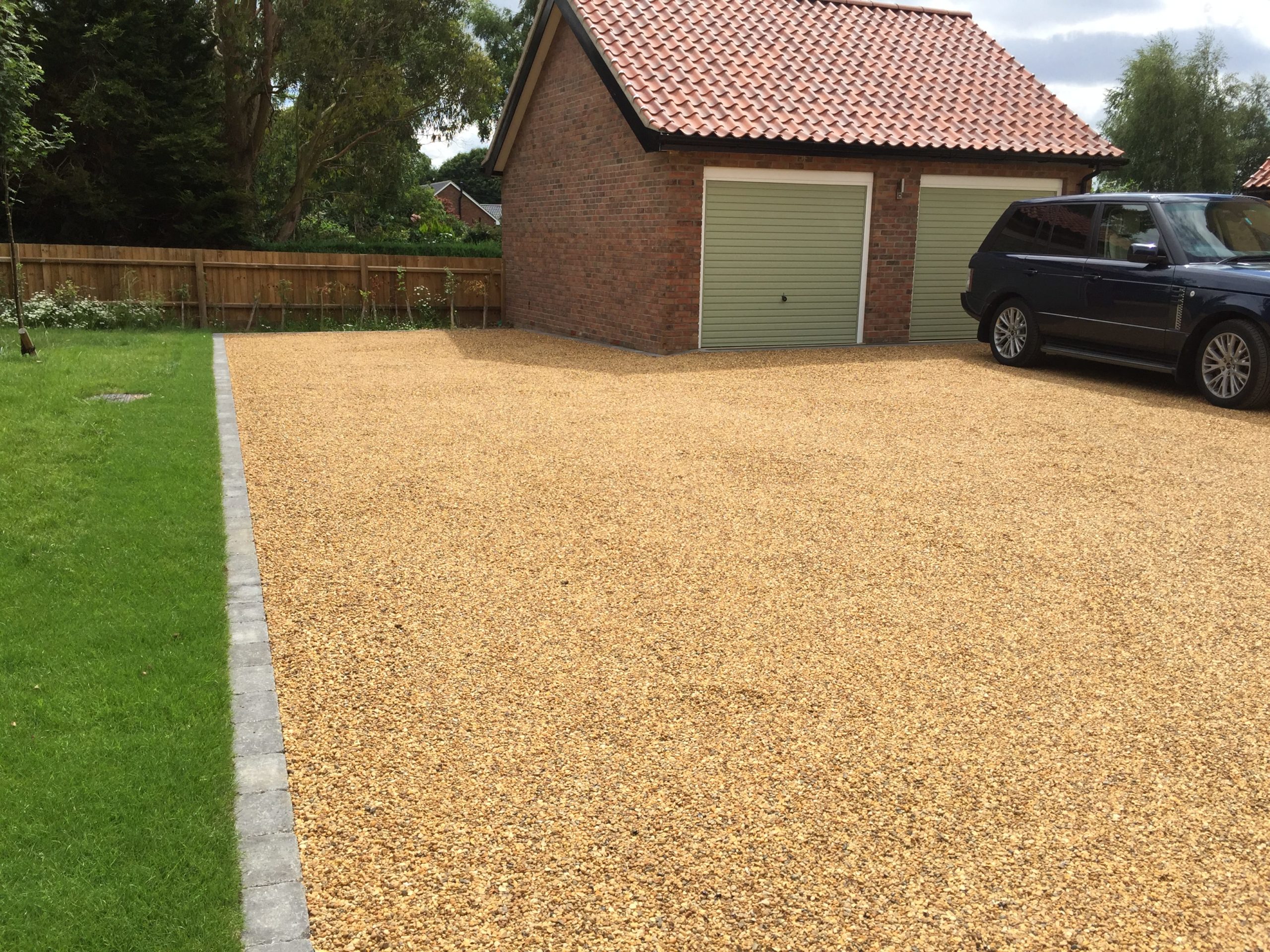 - Hot tar and shingle driveway with charcoal block edging – Brooke