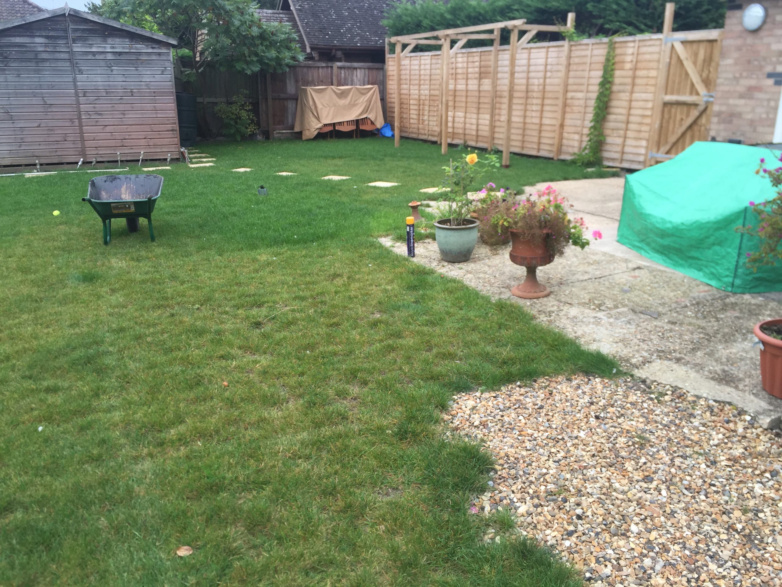 Next we installed new close board fencing on concrete posts and gravel boards around the perimeter of the garden. This allows our clients to have some privacy in their garden. We also installed a new 6ft x 8ft garden shed; for more storage.