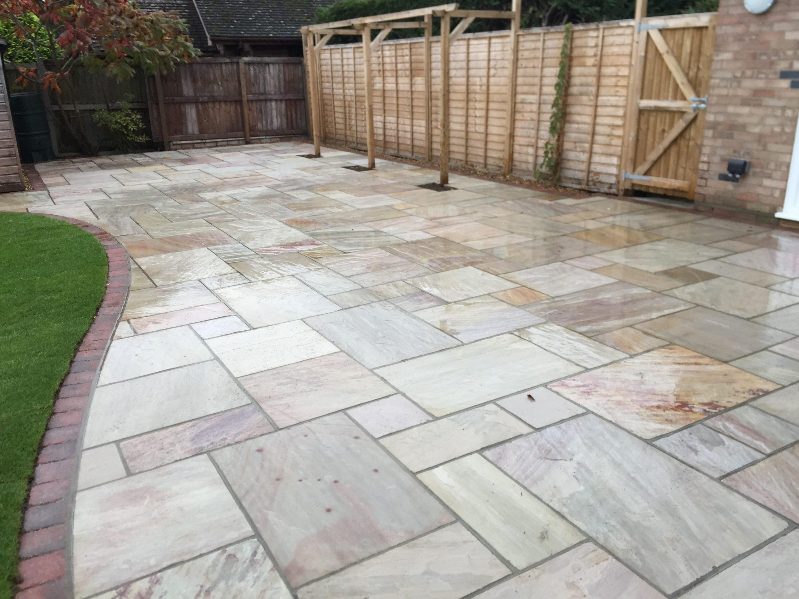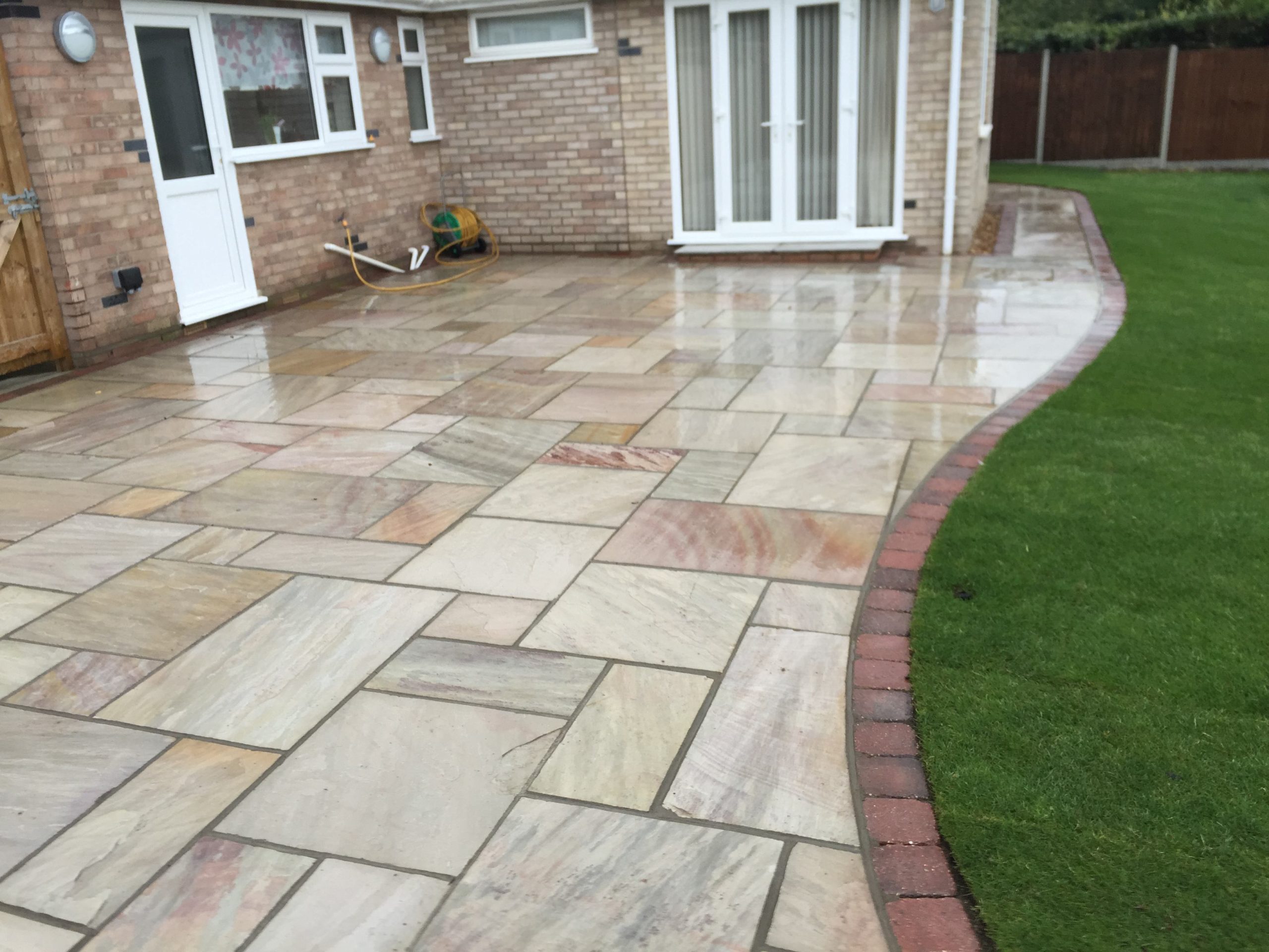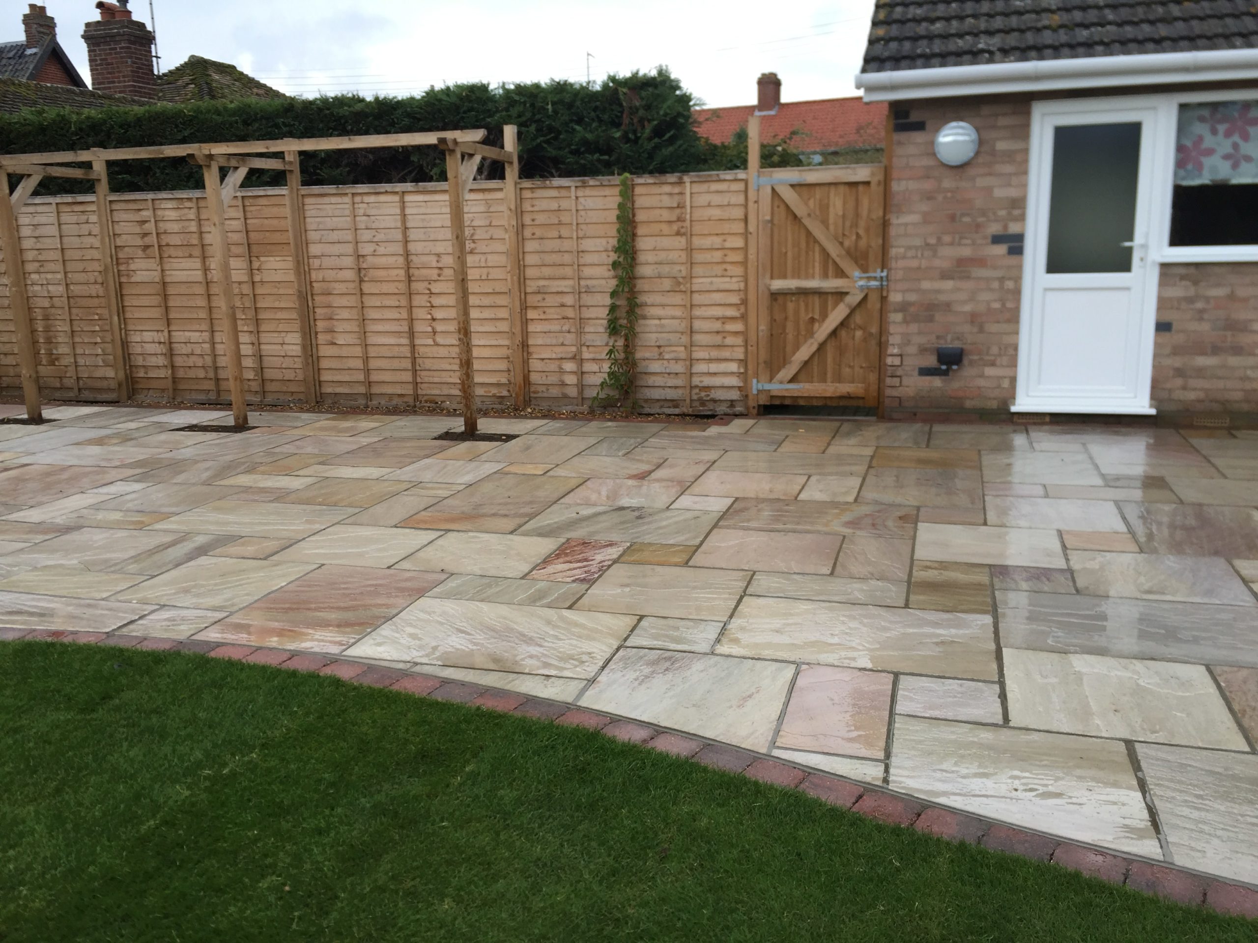 - Raveena Indian sandstone patio area with burnt amber edging – Diss, Suffolk
