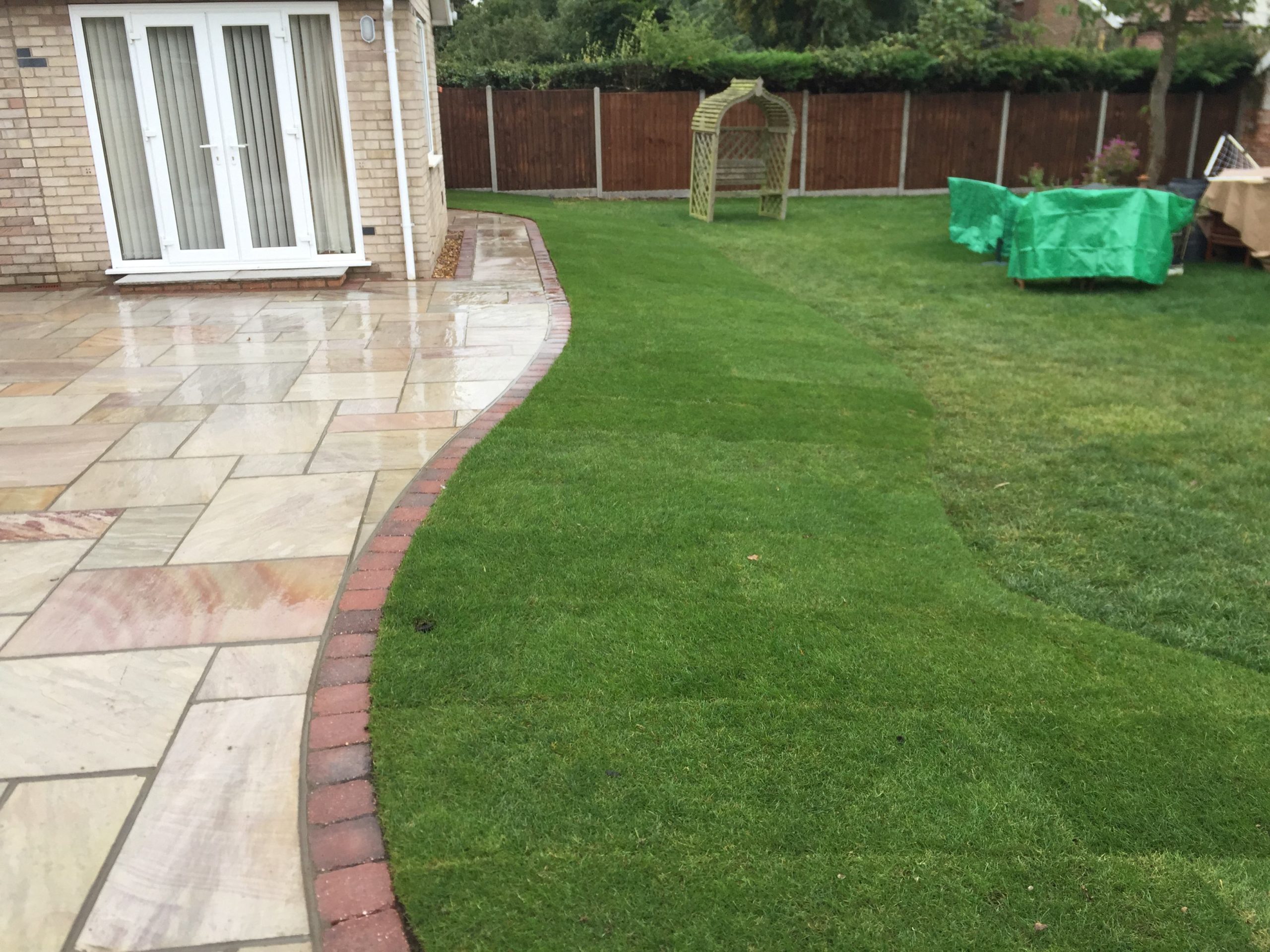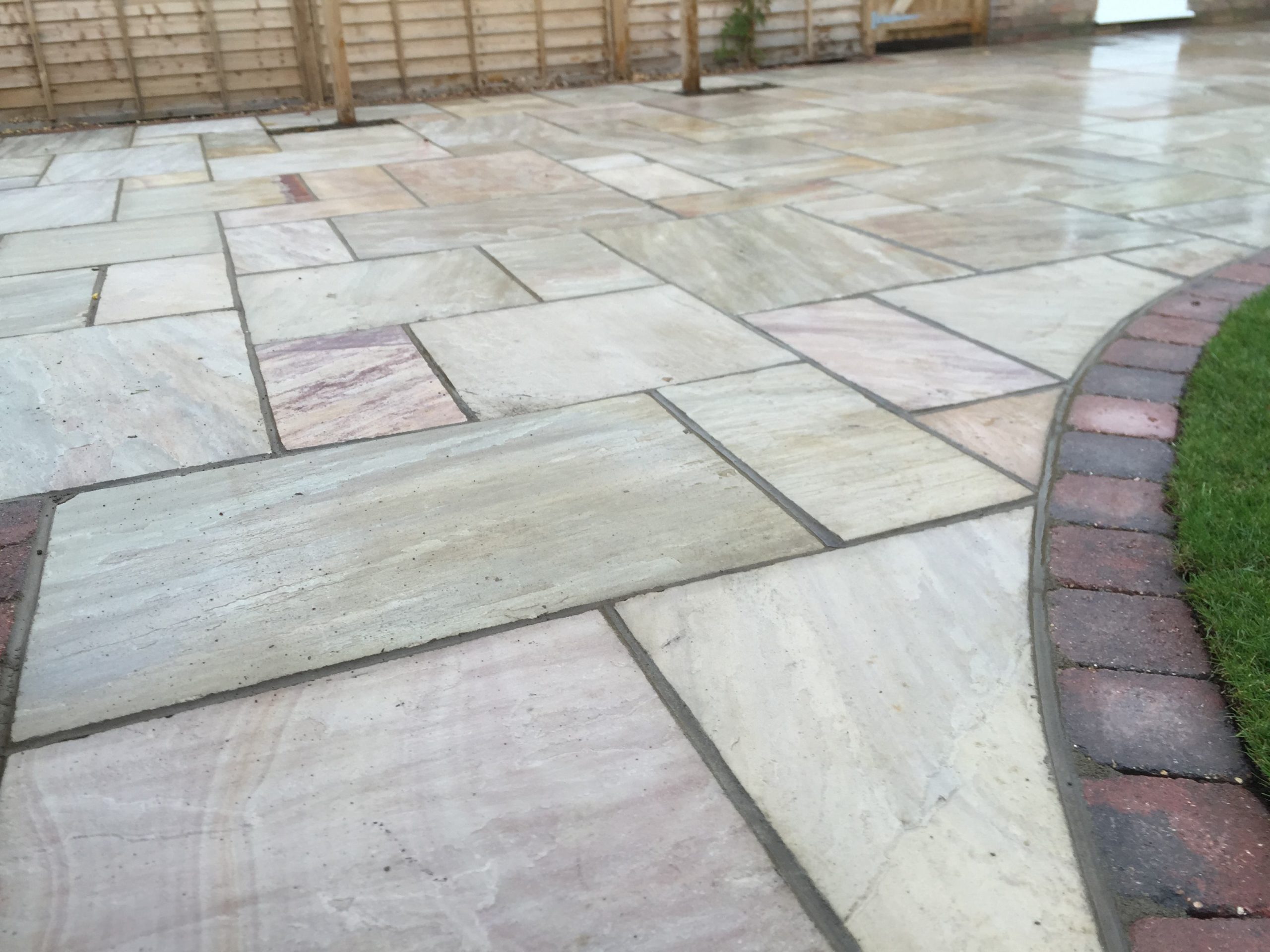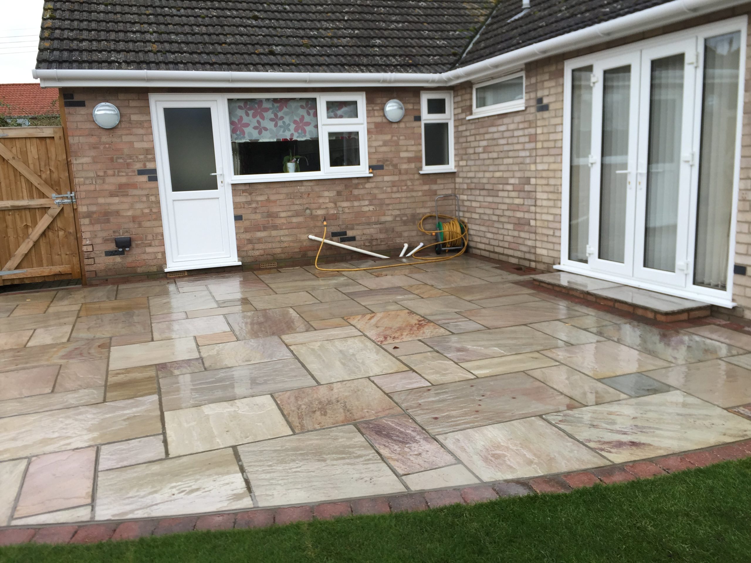 - Raveena Indian sandstone patio area with burnt amber edging – Diss, Suffolk