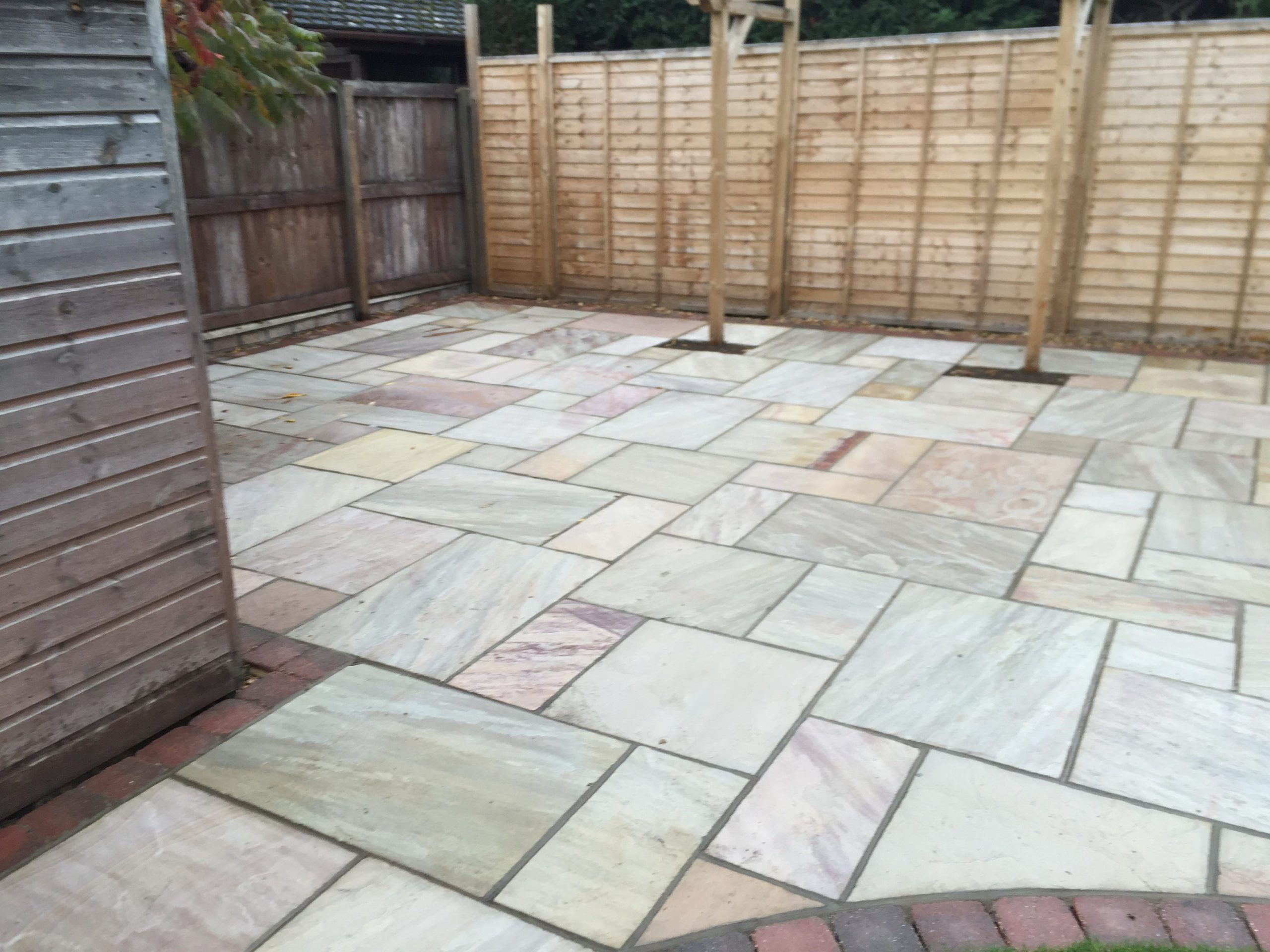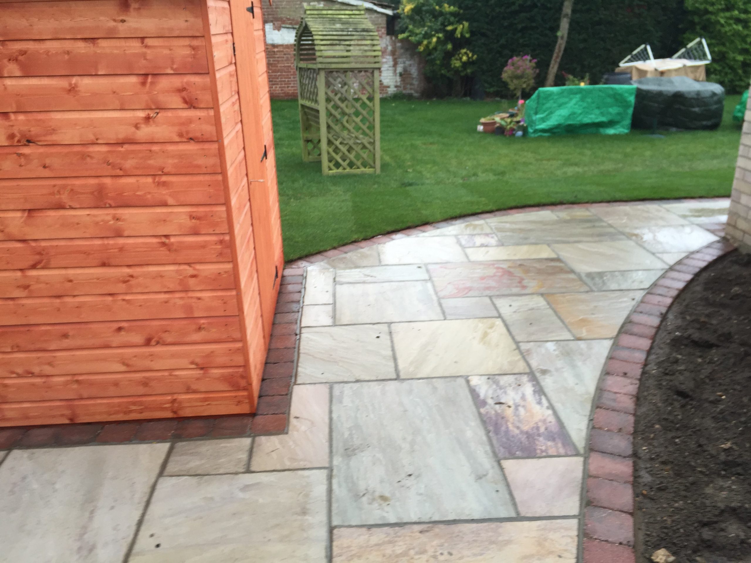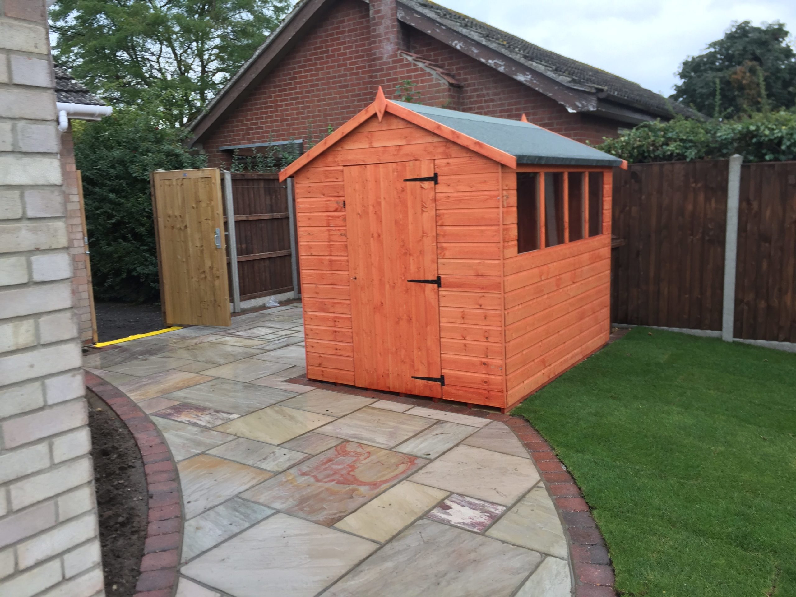 - Raveena Indian sandstone pathway and garden shed – Diss, Suffolk