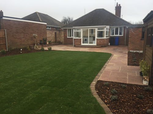 - Freshly laid lawn turf with Modak paving – Lowerstoft