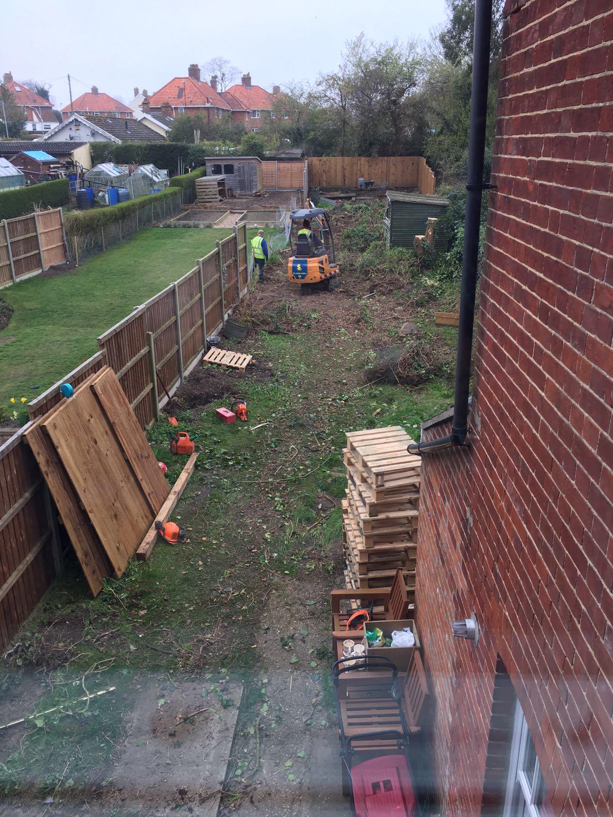 Here at Simons Landscaping LTD we were called in to give a more practical and low maintenance garden. We started the job by removing all trees, shrubs, hedges and old fencing – giving a clean canvas. Next we then enclosed the boundaries with close board fencing. Using concrete posts and gravel boards.