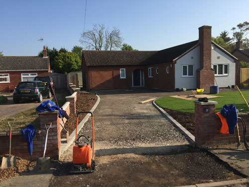 - Hardcore base being laid ready for tar and chip driveway – Halesworth