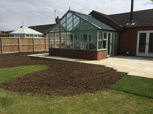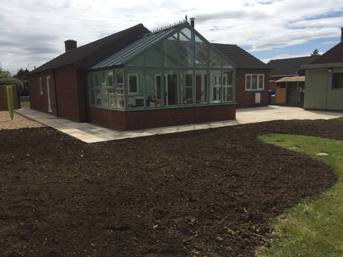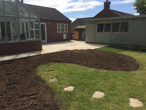 To start the job new flower beds were very simple to create. All of the flower beds are filled with mushroom compost ready for planting. Next we dug the old lawn off and put down newly laid top soil screened to 10mm. To finish of the job we then laid fresh turf on the lawn area.