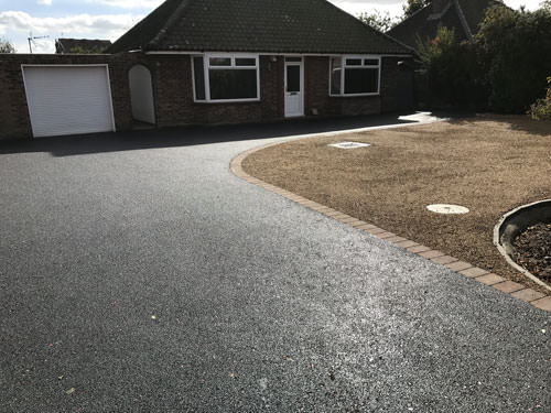 - Completed tarmac driveway with red fleck and hot tar & pea shingle – Sprowston, Norfolk