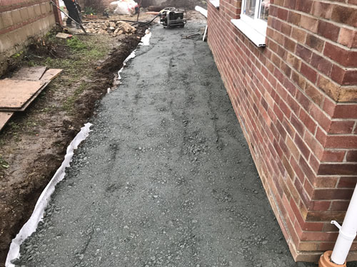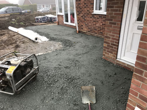 - Granite base being laid on terram – Mulbarton, Norfolk