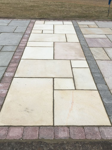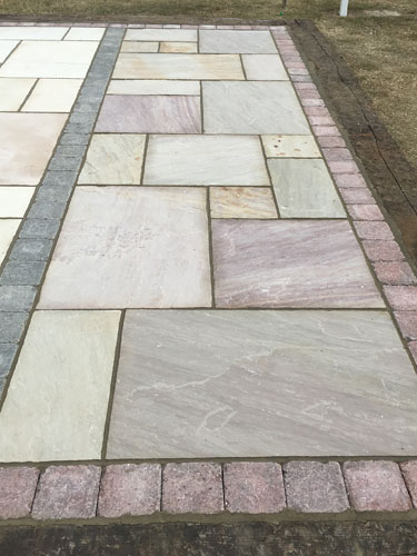 With the strong success of our stand from 2017, we decided to take the stand and develop it one step further. We decided to increase the overall area of the display, incorporating Indian Sandstone paving slabs with alternative edgings.