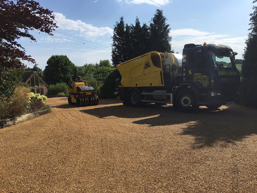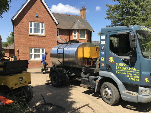 The hot tar and shingle surface dressing can be laid on top of multiple different foundations that may already be in place. These include: tarmac, concrete, brick weave, road planings or hardcore surfaces. The hot liquid tar is sprayed over the foundation of the surface, once sprayed the stone is then rolled in.