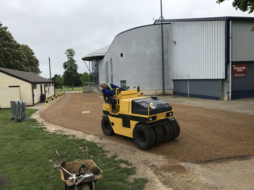Hot tar and shingle surfacing is a lower cost alternative surfacing finish than using tarmac or block paving. Once there is a firm foundation, the hot liquid tar is sprayed over the foundation of the surface. The stone shingle is then laid on top of the hot tar and rolled in with a rubber roller. The rubber roller is an essential part of job, as this does not break the stone when being rolled into the hot tar.