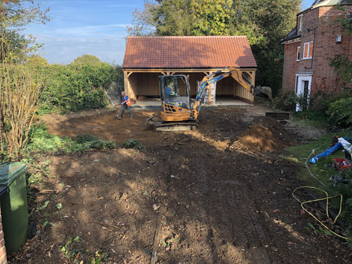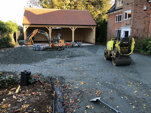 To start the project we got our team on site and started removing the old driveway. This was done with a mini digger to clear off the old tarmac. Once removed and cleared from site, this allowed our team to start laying the foundations for the new Resin Bound driveway. The main base of the foundation was a type one free draining system, this is key for the Resin Bound driveways; as this will need to allow water to drain through.