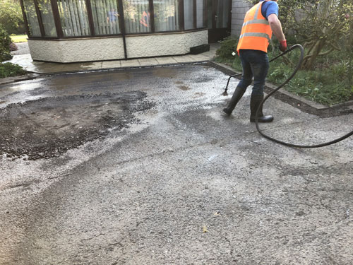 The final part of the tarmac driveway renovation was to work on the tarmac itself. We started this part by thoroughly cleaning the old tarmac drive; this is to ensure a clean and smooth surface to apply the new tarmac layer. Once the driveway was clean, our team the applied an emulsion TACK coat to the surface; this allows the new tarmac to bond with the old tarmac surface. Next our team hand laid 6mm stone mastic asphalt at 40mm thick across the whole surface. Finally we laid silver decorative stone across the whole driveway, this was then rolled into the newly laid tarmac.