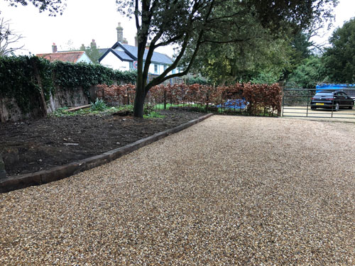 - Shingle driveway with sleeper edgings – Norwich, Norfolk