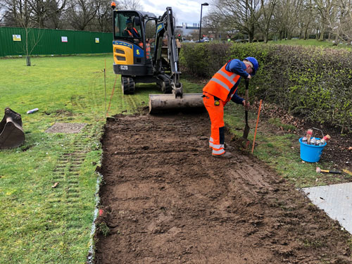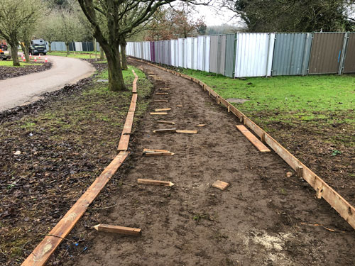 - Marking out the pathway shape with wooden gravel boards – Norwich