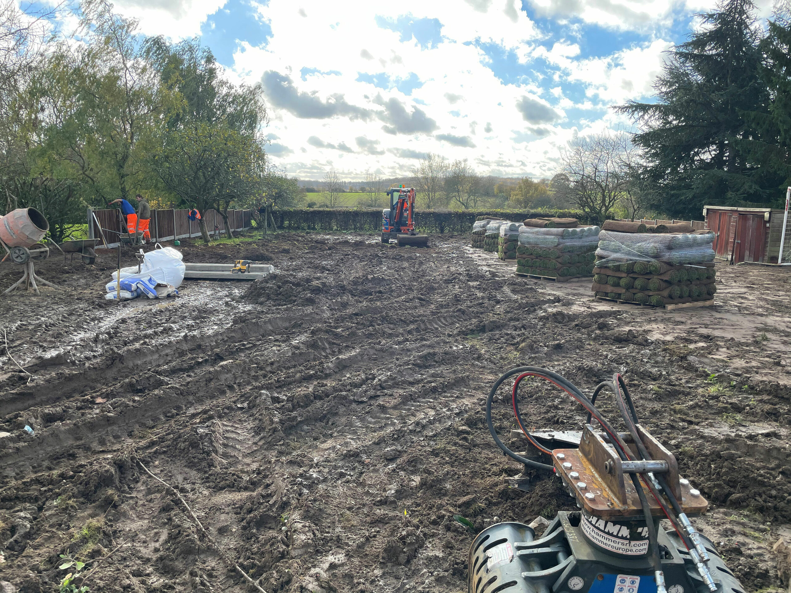 Our clients in Norwich, Norfolk need our assistance to clear out an old and tired lawn area and replace with new fencing turfing and a patio area. To start the job our team had to work and clear off the old, tired and over grown garden areas. hedges and old fencing taken down and all was removed from site. Our team also removed excess and old soil and imported new soil to ensure that the whole garden area is level.