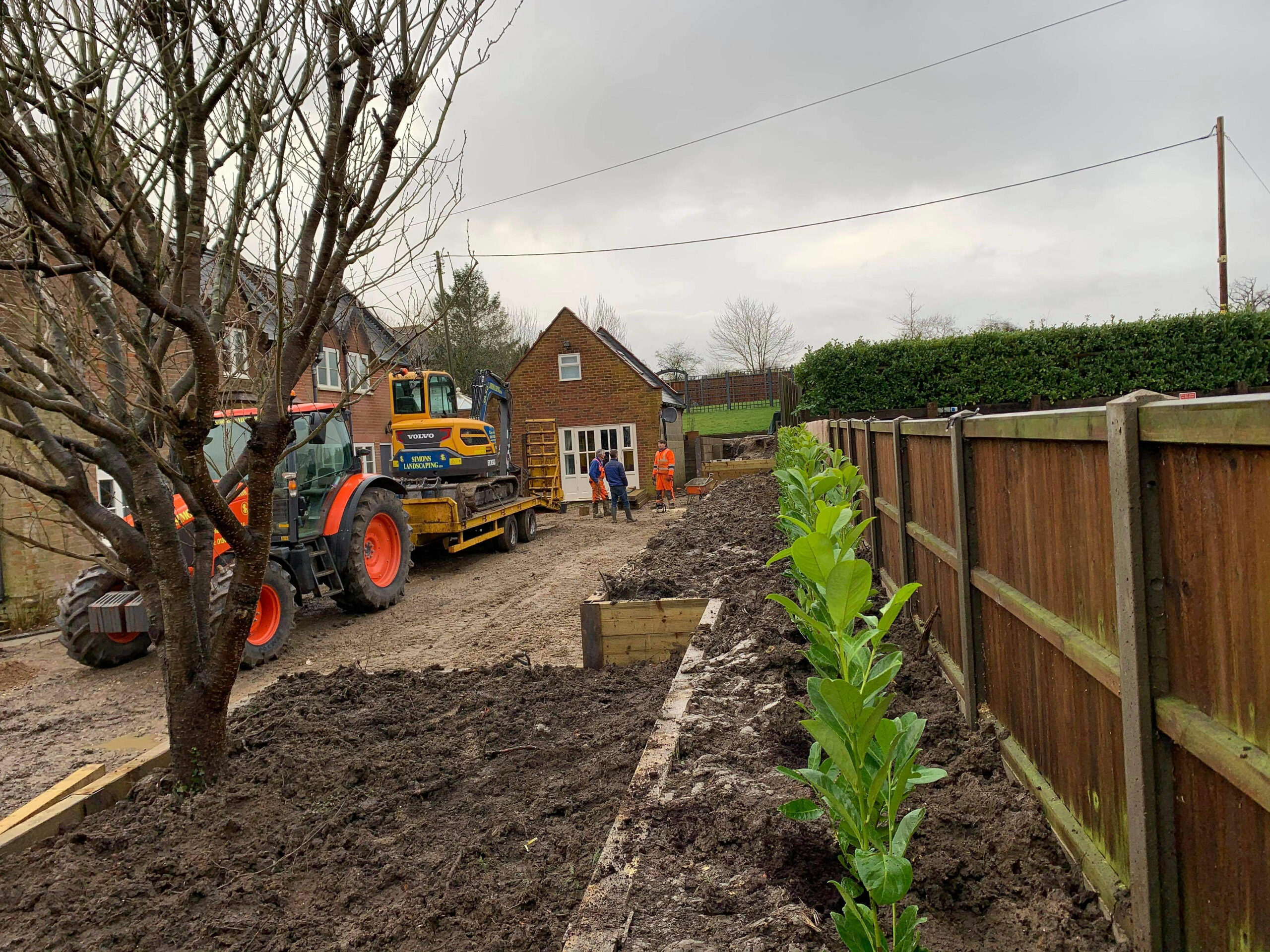 Starting the new year of right with some new plantings for one of our customers. Our customer required raised sleeper beds with hedging planted in them. The beds were created and we used top soil to fill, to finish our team planted a row of Laurel hedging to give our customer privacy in the future.