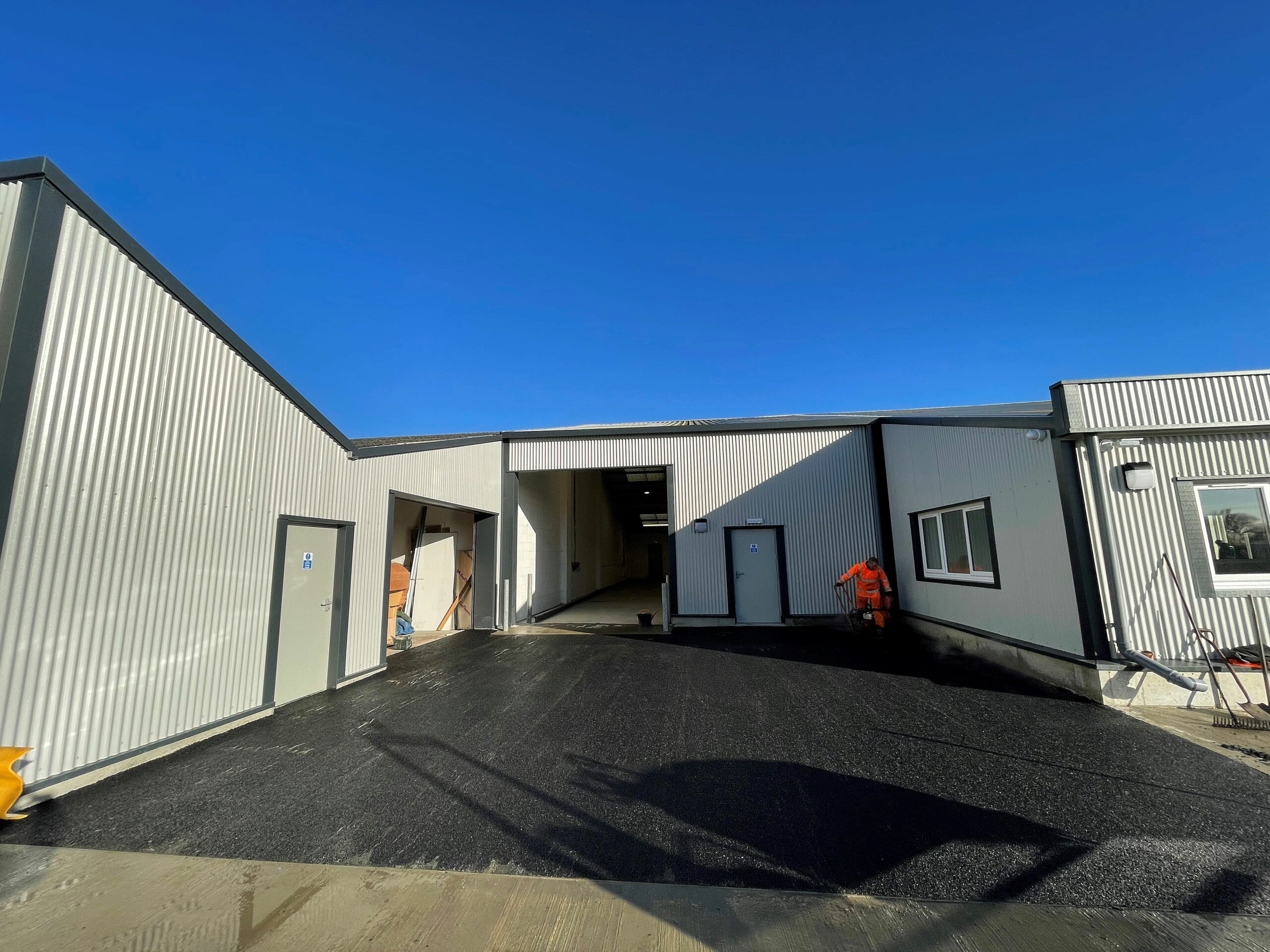 We have completed two different surfacing works over the last month, one is a new driveway for a customer in Norwich and the other was a commercial entrance to a warehouse. The commercial entrance required our team to use a tack coat on top of a concrete base to allow the tarmac to stick. Next our team used a total of 70mm of tarmac covering the base and top, of which was racked over and rolled to a smooth finish.