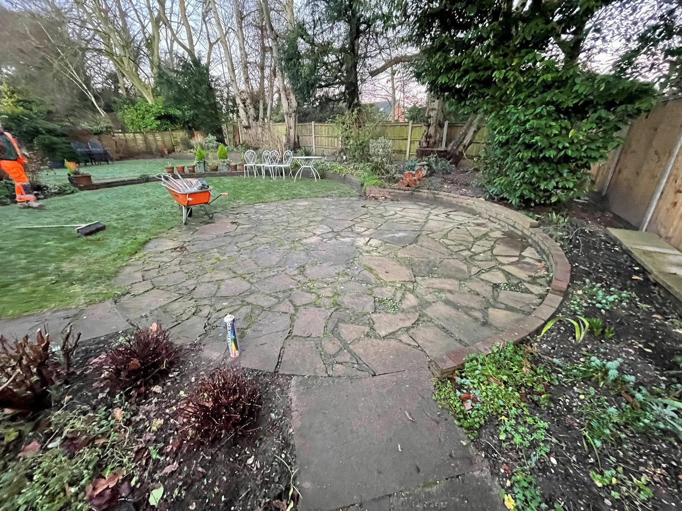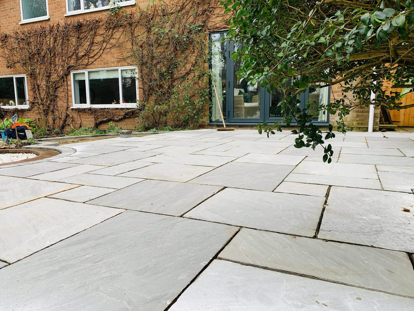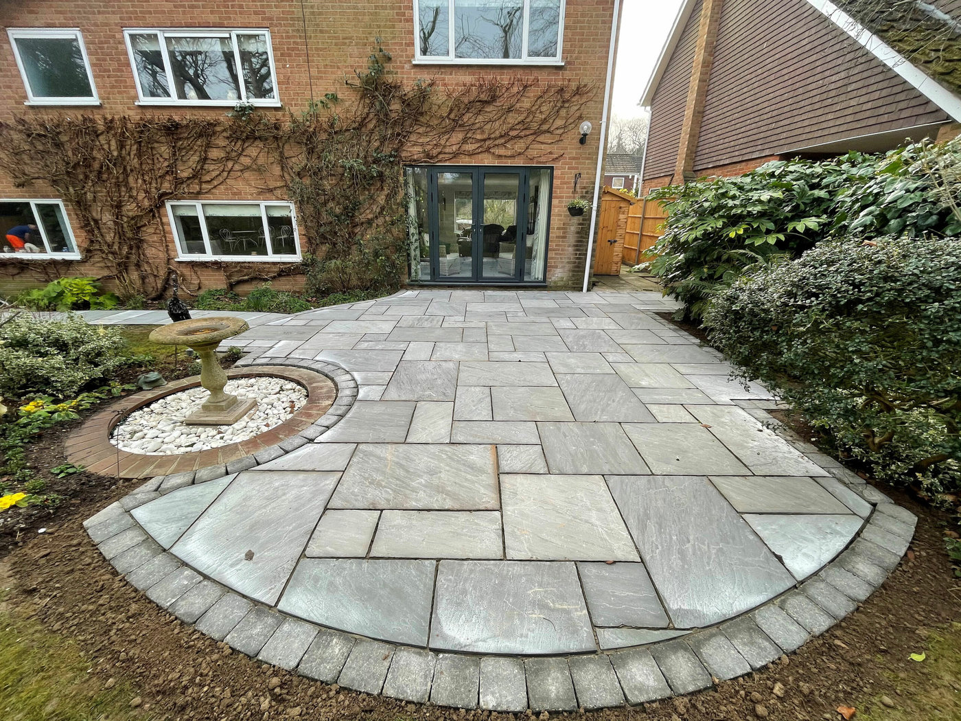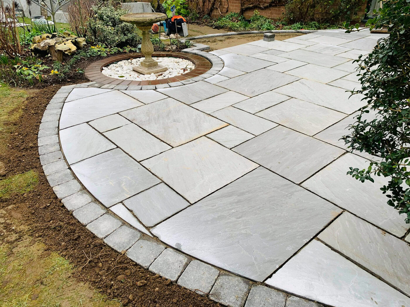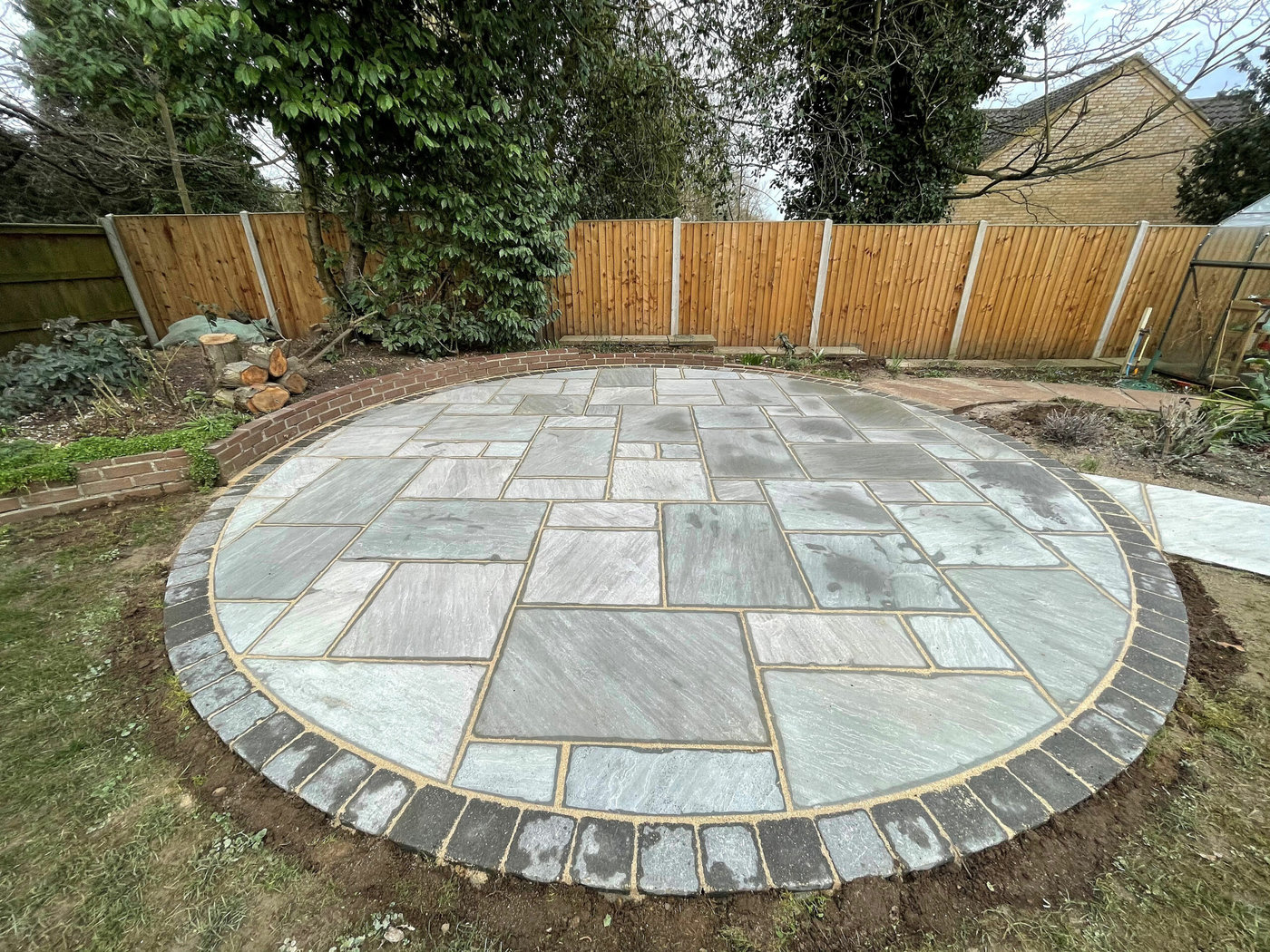 - Kandla grey circle Indian sandstone patio – Norwich, Norfolk