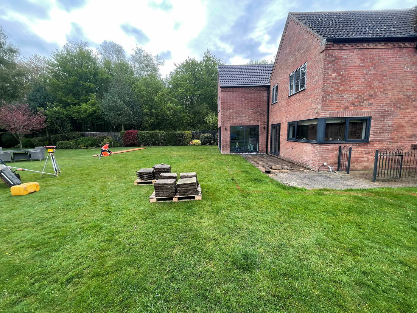 We were called by our customer to look to install a new patio area for their garden. The main aim of the patio was to connect all of their back entrances and create an outdoor feature area in the summer, in total this would measure up to be a total of 157m2 patio area. After a site visit with the customer a quote was drawn up and accepted, from there we got our customer booked in and work commenced.