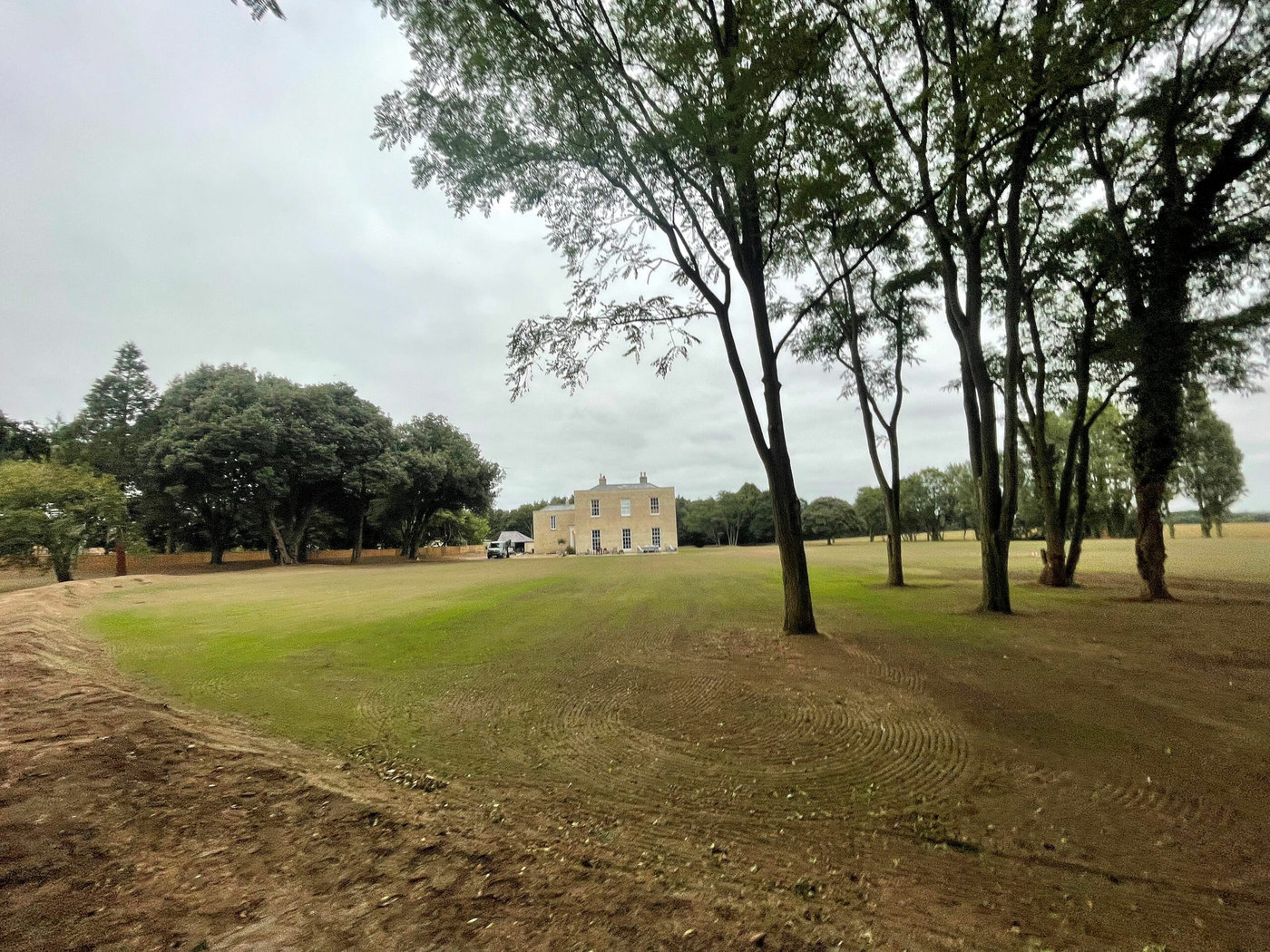 We used earth moving equipment to spread all of the soil over the land to create an even spread. This levelled out many holes and also gives the soil a chance to dry out. The next job was to sub soil the whole area, this was done to break the soil down further and create drainage. This is important to prevent water build up across the whole garden area and will also prevent marsh build up. Once this job was completed our team left soil for two weeks to dry out further to ensure it is fully ready for the next stage. Once the soil area was completely dry, our team power harrowed the soil down to a fine tilth. This is required to to break up any large clods of soil to ensure there are no large lumps in any of the area. After all the soil preparations had been completed out team got to work seeding the whole area.