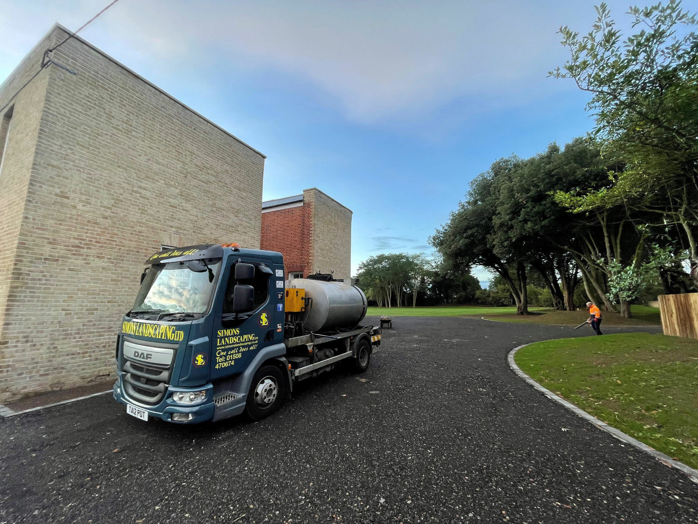 After all of the foundations had been finished our team was able to start the surfacing works of the project. Our customer went for the tar and shingle surfacing option for their driveway, this provides a stunning stone finish without the sweeping maintenance as the stones are rolled into hot tar. Using the latest machinery our team was able to surface the whole area, spraying hot tar onto the base and then following up with loose shingle which is then rolled in. We also installed a complete tarmac washdown bay for our customer round the side of their property.