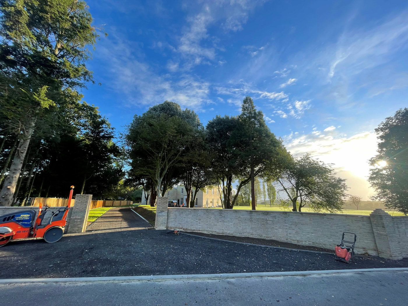 As all of the soil areas had been completed our team got to work on preparing the whole driveway area for our customer. This started with installing the block edging around the whole perimeter of the driveway. Once these have been installed our team started to install the driveway foundation ready for us to surface. Our customer also had a request for a well to be installed next to their property to add more character to the landscaping piece. The final area to complete preparation in was the entranceway of the driveway. Our team safely coned off the appropriate area to create a safe working space and we got to work preparing the entranceway. To help assist with the longevity of the driveway our team renovated and increased the height of the brick entrance piers. To finish this part of the driveway we will be installing new electric gates for our customer to use and give them the ease of access of their new driveway