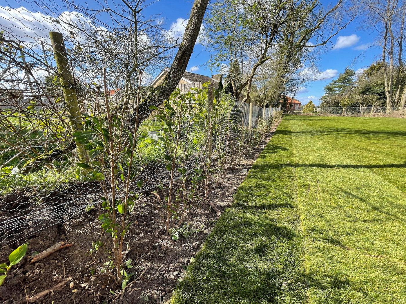 In the final stages of the rear garden our team installed rabbit net fencing around the back of the garden. This will prevent any unwanted wildlife and pests coming into the garden area. As an extra precautionary measure and decorative addition, we also installed hedging in front of the net fencing. Finally we laid fresh lawn turf across the whole garden area to provide the clean and an immediate finish for our customer to enjoy.