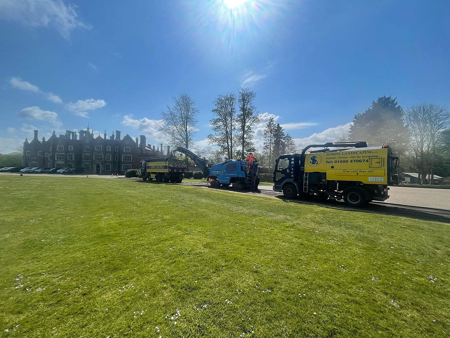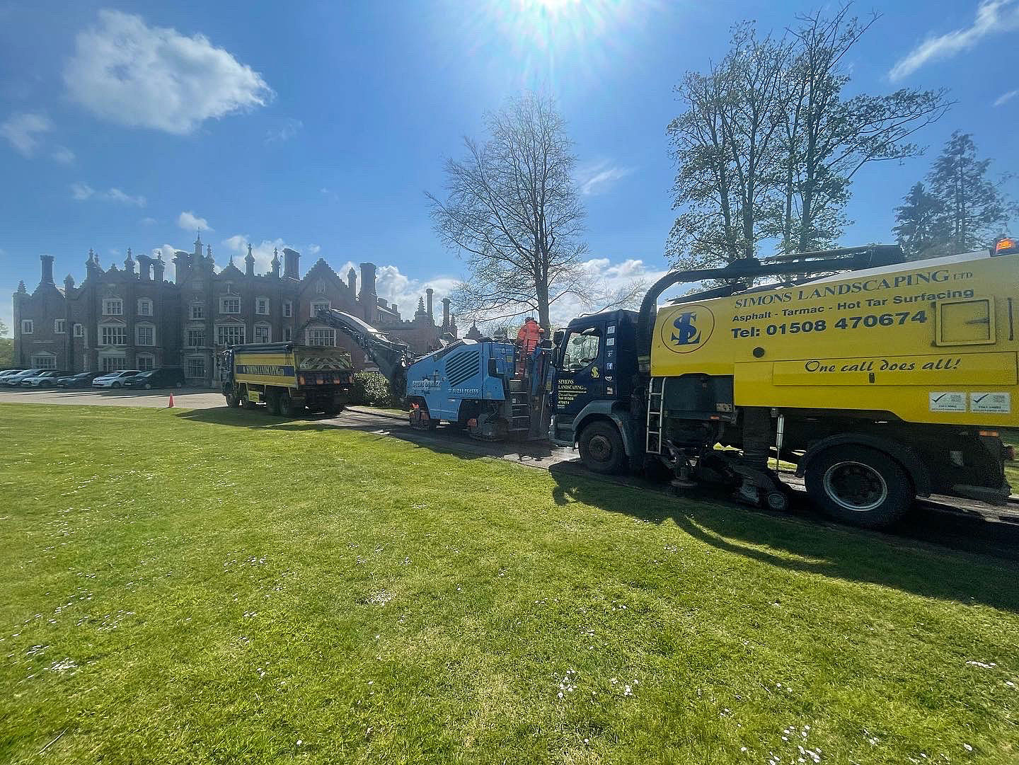 With April now coming to a close, we have now entered Landscaping season! Our latest client required a complete resurface of their driveway in the stunning Norfolk countryside. We had to start this particular project with a tidy up, we used our sweeper equipment to clean off the old complete driveway surface. This created the perfect starting point for our team to work with.