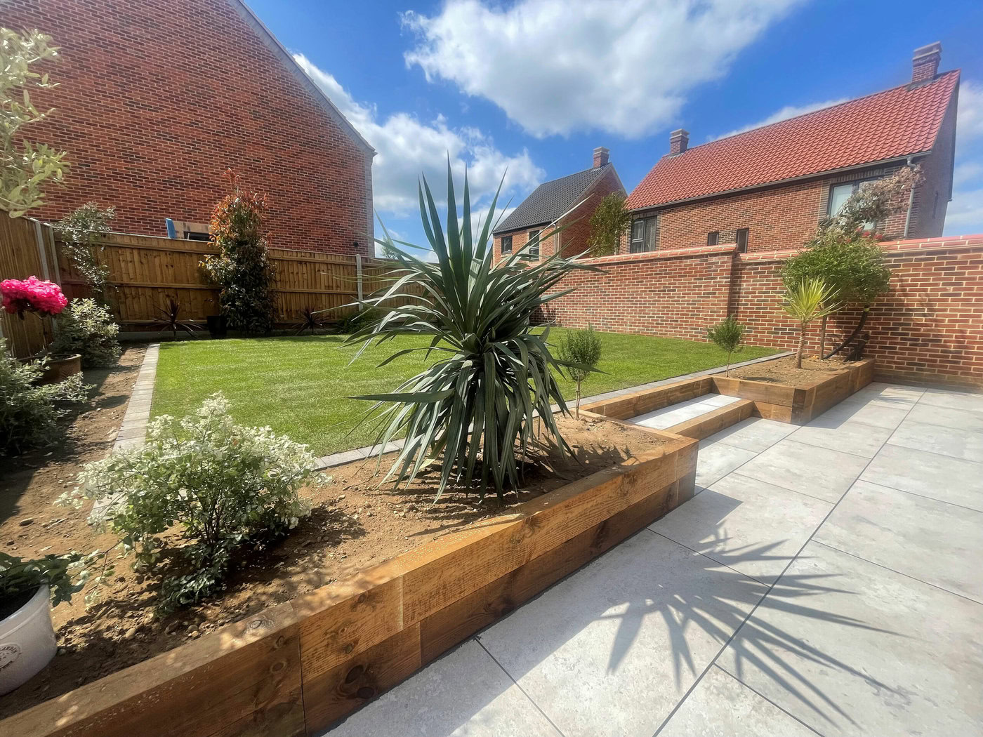 As the weather is really heating up and a lot of people are now enjoying the heat ready for the summer. We have completed a range of different projects over the May month and we wanted to show off what we have completed for our customers! To start we have finished a range of garden works across Norwich and Norfolk. Ranging from sleeper beds, fencing, turfing and a flower bed revisit. We have added a burst of colour to our customers garden areas and they are now ready to be enjoyed in the summer.