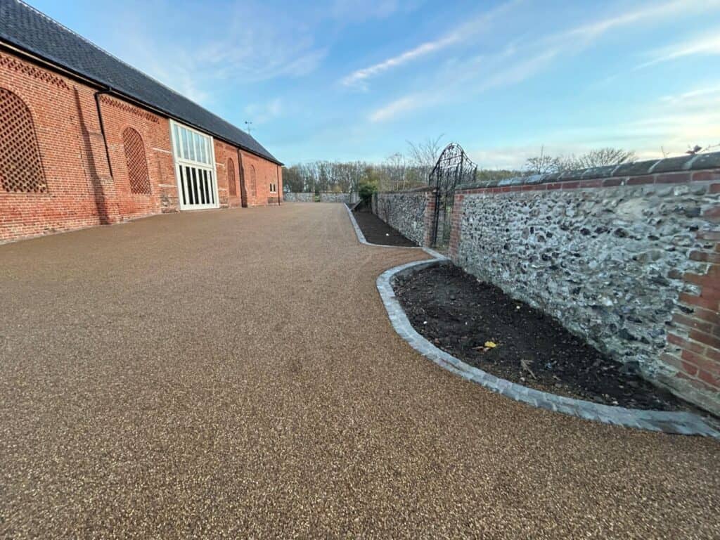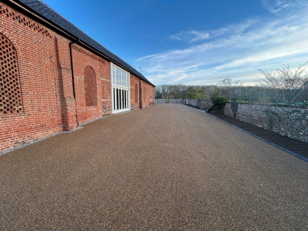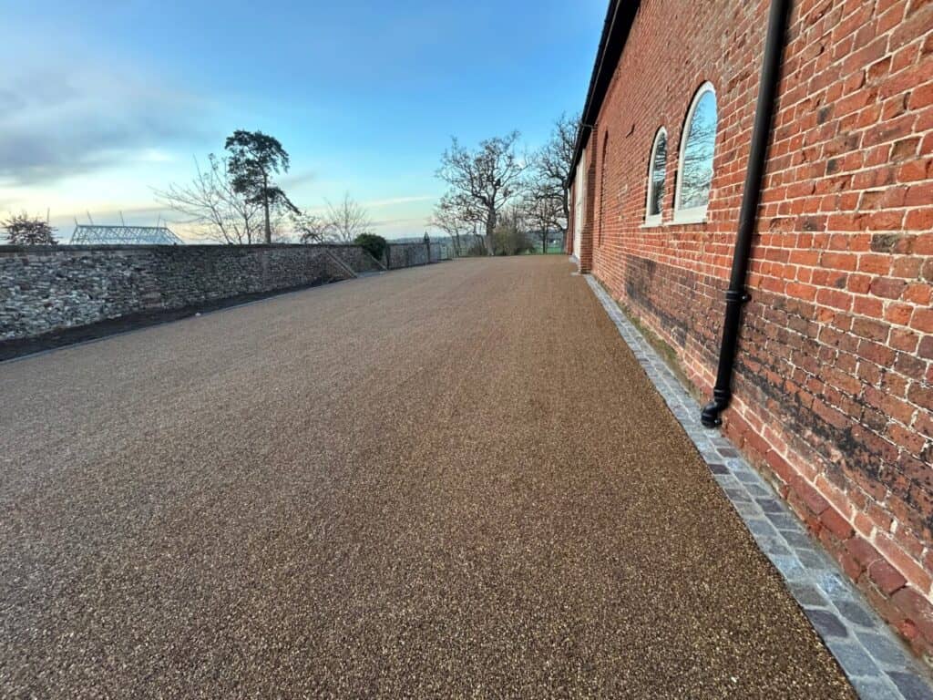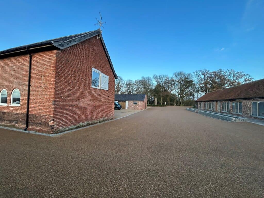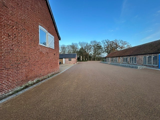 To finish off the grande’ project we have prepared the yard area by laying additional granite sets along the boarders and buildings, laid 100mm approx. of tarmac through our tarmac laying machine to form a strong durable base throughout. The surface was left for 3 days for the oils to wash off before the next surfacing phase.
